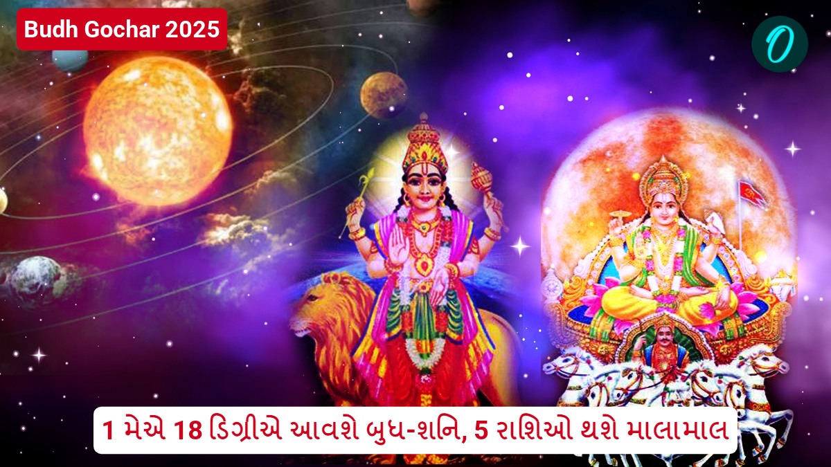 Budh Gochar 2025: 1 મે, 2025 ના રોજ, વૈદિક જ્યોતિષમાં એક દુર્લભ ગ્રહ સંયોગ થશે. બુધ, સૂર્ય અને શનિ સવારે 11:49 વાગ્યે એકબીજાથી 18 ડિગ્રીના ખૂણા પર સંરેખિત થશે.