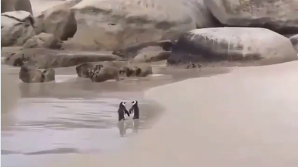 દરિયાકિનારે પેંગ્વિન કપલ કરી રહ્યા હતા રોમાન્સ, જુઓ રોમેન્ટિક વીડિયો