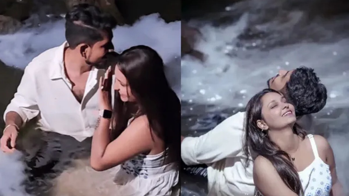 સોશિયલ મીડિયા પર વાયરલ થઈ રહેલા આ વીડિયોમાં એક કપલ પોતાના લગ્ન પહેલા પ્રી-વેડિંગ ફોટોશૂટ કરાવી રહ્યું છે. રાત્રિનો સમય છે અને એક યુવક અને એક યુવતી તળાવમાં પાણી વચ્ચે છે.