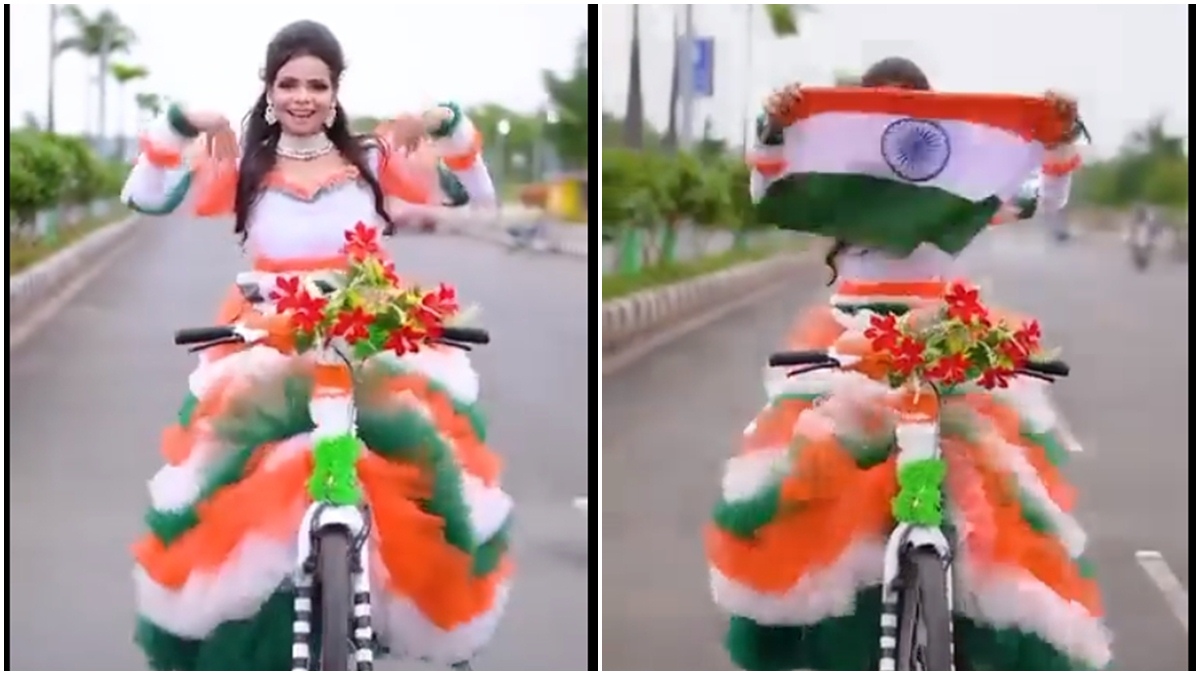 યુવતીએ તિરંગા જેવો પોશાક પહેર્યો છે, અને સાઇકલને પણ તિરંગાના રંગોથી શણગારવામાં આવી છે. આ યુવતી યે મેરા ઈન્ડિયા ગીત પર ડાન્સ કરતી જોવા મળશે. વીડિયોના અંતમાં તમે યુવતીને પણ તિરંગો લહેરાવતી જોશો.
