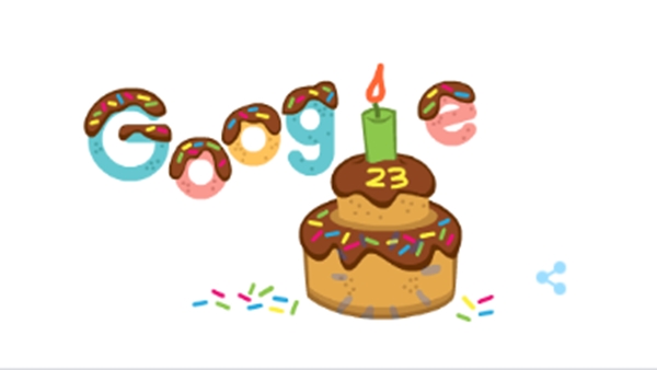 Happy Birthday Google : સર્ચ એન્જિન ગૂગલ ( Google ) આજે તેનો 23 મો જન્મદિવસ ઉજવી રહ્યું છે. આ ખાસ પ્રસંગે ગૂગલે એક અદભૂત ડૂડલ બનાવ્યું છે. ડૂડલમાં બતાવવામાં આવેલી કેક પર 23 લખેલું છે, આ સાથે જ મીણબત્તીની ડિઝાઈન સાથે પણ તેને સુંદરતા આપવામાં આવી છે.