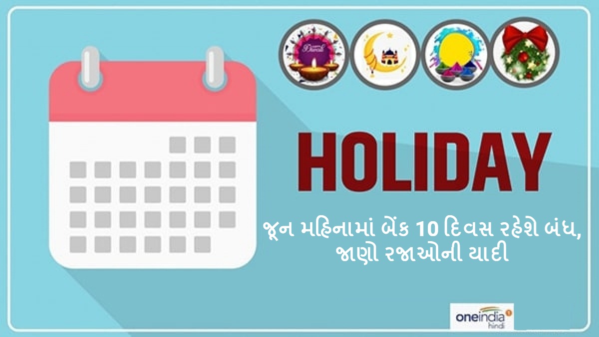 રિઝર્વ બેંક ઓફ ઈન્ડિયા (RBI) દ્વારા જાહેર કરવામાં આવેલા રજાના કેલેન્ડર મુજબ, જૂનમાં કુલ 10 દિવસ બેંક બંધ હોવાને કારણે કોઈ કામ થશે નહીં. જેમાં પાંચ રવિવાર અને 2 શનિવારની રજાઓનો સમાવેશ થાય છે.