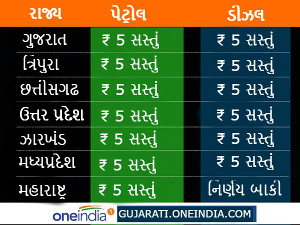 ગુજરાત સહિત આ રાજ્યોમાં 5 રૂપિયા સસ્તું થયું પેટ્રોલ
