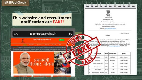 પ્રેસ સૂચના બ્યૂરોના ફેક્ટ ચેક હેન્ડલે કહ્યુ કે વેબસાઈટ અને ભરતી અધિસૂચના બંને નકલી છે.
