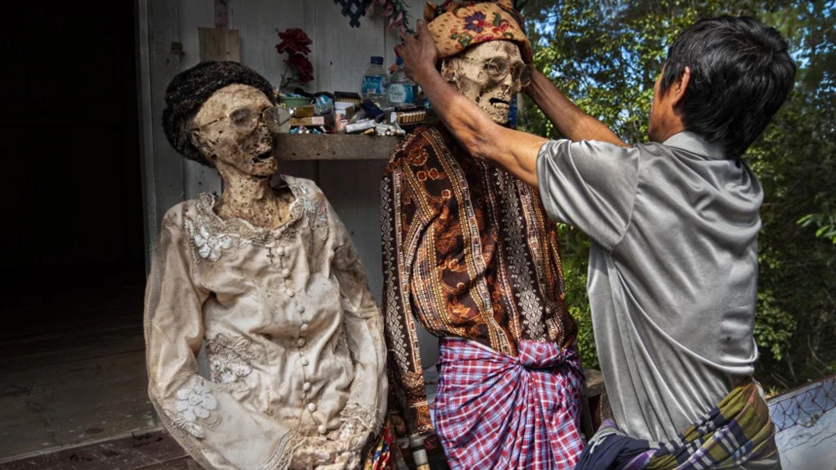 ઈન્ડોનેશિયાના તોરાજા જનજાતિના લોકો તેની અનોખી પરંપરા માટે જાણીતા છે. આ જાતિના લોકો તેમના અંગલ લોકોના મૃત્યુ પછી દફનાવતા નથી અને પરંતુ તેમના મૃત શરીરની એક જીવંત વ્યક્તિની જેમ કાળજી લે છે.