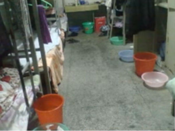 એપલ ફેક્ટરીમાં રહેનારાઓ માટે ગરાજમાં બાથરૂમ બનાવવામાં આવ્યું છે, જ્યાં તેઓ ન્હાય છે.