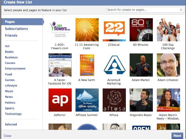 ફેસબુકમાં ઇંટ્રેસ્ટ લિસ્ટ બનાવવું ઘણું સહેલું છે, તેનાતી તમે તમારી પસંદગીના લોકો સાથે કનેક્ટ રહી શકો છો, જેમકે જો તમે ખાવાની કોઇ યાદી બનાવી છે, તો તેમાં તમામ રેસિપી સાઇટ અને શેફ મેંબરને એડ કરી શકો છો, તેમના તમામ અપડેટ તમને આ યાદીમાં જ મળી જશે. લિસ્ટ બનાવવા માટે https://www.facebook.com/bookmarks/interests જઇને Add Interests' button બટન પર ક્લિક કરઓ અને જે પેજ અથવા જેને તમે લિસ્ટમાં જોડવા ઇચ્છો છો, તેને જોડો, તમે ઇચ્છો તો પ્રાઇવસી સેટિંગમાં જઇને લિસ્ટને પબ્લિક અથવા તો પર્સનલ પણ કરી શકો છો.