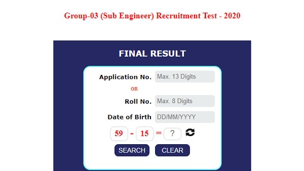 - વેબસાઈટના હોમપેજ પર તમને Group-03 (Sub Engineer) Recruitment Test 2020 લખેલું જોવા મળશે, ત્યાં ક્લિક કરો.