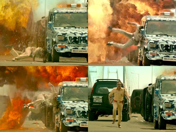અજય દેવગણ એક ગુંડાને હવામાં ફંગોળે છે અને તે નીચે પડે, તે પહેલા તો બીજા ગુંડાને ચોટ કરે છે.