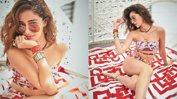 અનન્યાએ જે પ્રિન્ટેડ બિકીની પહેરી હતી તેમાં લાલ અને બ્લૂ શેડ્સ સામેલ હતા. અપર અને બોટમ બંને સાથે મેચિંગ ફેબ્રિકનો બેલ્ટ આપવામાં આવ્યો હતો, જે તેના દેખાવમાં સ્ટાઈલ ક્વોશન્ટ વધારવા માટે કામ કરી રહ્યો હતો.