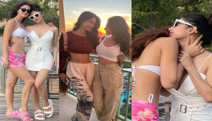 દિશા પટણી આ ફોટોમાં બિકીની ટોપ પહેરેલી જોવા મળી રહી છે. તેની સાથે મૌની રોય પણ કમાલની સુંદર લાગી રહી છે. બંને એકસાથે ખૂબ જ ક્યૂટ લાગી રહી છે.
