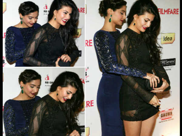 ફિલ્મફેર અવાર્ડ દરમિયાન જૅકલીન ફર્નાન્ડીઝને તેના કપડામાં કૈક તકલીફ પડી હતી. જેના માટે તેને સોનમ કપૂરની મદદ લેવી પડી હતી.