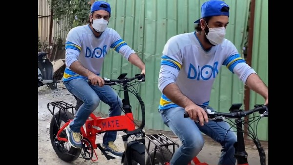 રણબીર કપુરની ઇલેક્ટ્રીક સાઇકલે દરેકનું ધ્યાન આકર્ષિત કર્યુ છે. આ દરમિયાન રણભીર કપુર ગ્રે રંગની ટી શર્ટ અે બ્લુ જીન્સ પહેરી હતી. સાથે જ તેણે બ્લુ કૈપ સાથે માસ્ક પણ લગાવ્યુ હતુ. તેની આ તસવીર લોકોને ભારે પસદ આવી રહી છે.