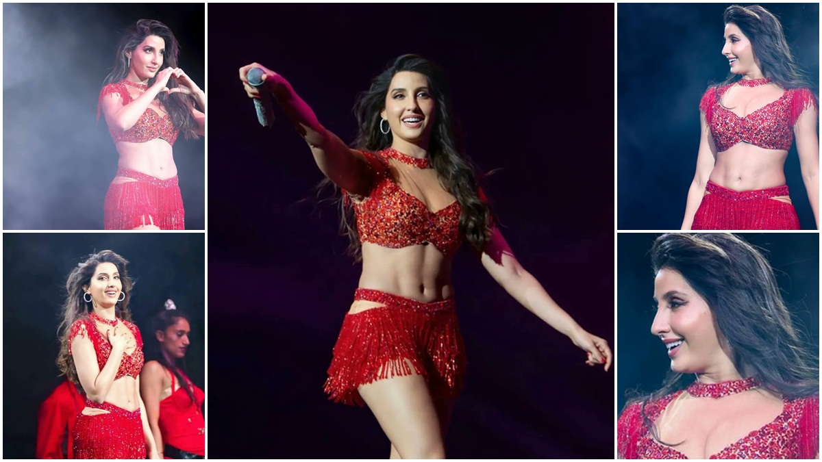 Nora Fatehi Photos : હોટ રેડ ચીલી બની નોરા ફતેહી, સ્ટેજ પર લગાવી આગ