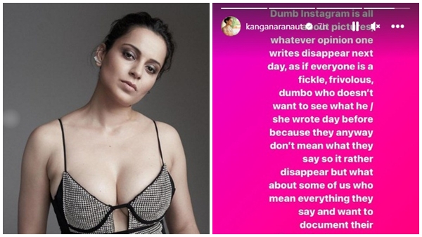 ઉલ્લેખીય છે કે, થોડા દિવસો પહેલા કંગનાએ તેની ઈન્સ્ટાગ્રામ સ્ટોરી પર લખ્યું હતું - 'ડમ્બ ઈન્સ્ટાગ્રામ માત્ર તસવીરો વિશે છે, અમે અમારા વિચારોને લખીએ છીએ,તે એક જ દિવસમાં અદૃશ્ય થઈ જાય છે. તે બીજા બધાની જેમ અસ્થિર, આળસું વ્યક્તિ છે.