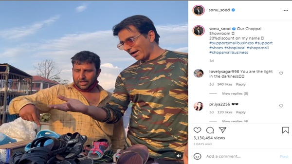 સોનુ સૂદે પોતાના ઇન્સ્ટાગ્રામ પર હેન્ડકાર્ટન શમીમ ખાન સાથે વાત કરતી વખતે એક વીડિયો પણ શેર કર્યો છે. વીડિયો શેર કરતા સોનુ સૂદે લખ્યું, અમારો સેન્ડલ શો રૂમ. મને મારા નામે 20 ટકા ડિસ્કાઉન્ટ મળશે. સોનુ સૂદે વીડિયો પોસ્ટ કરીને નાના વ્યવસાયને પ્રોત્સાહન આપવાની અપીલ કરી છે. સોનુએ પોસ્ટ સાથે #supportsmallbusiness #shopsmallbusiness હેશટેગ પણ જોડ્યું છે. વાસ્તવમાં સોનુ સૂદ શમીમ ખાનની લારી કે સામનાના પ્રમોશન માટે ગયો હતો.