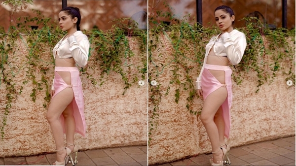 ઉર્ફીએ ગુલાબી થાઈ હાઈ સ્લિટ અને બેક કટ આઉટ સ્કર્ટ સાથે સફેદ શર્ટ પહેર્યો છે. જે તેમના બસ્ટ એરિયા સુધી જ પહોંચે છે. આવા સમયે આ શર્ટ આગળથી અડધુખુલ્લું છે.
