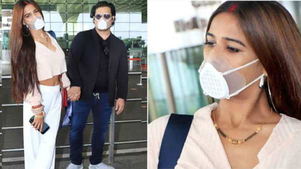 કોરોનાના ડરથી બંનએ મોઢા પર માસ્ક પહેરેલુ હતુ. પરંતુ કેમેરો જોતા જ બંનેએ કપલ ગોલ્સ જોરદાર દેખાડ્યુ.