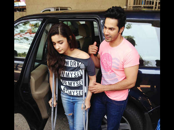 આલિયા ભટ્ટ વરુણ ધવન સાથે કાંખઘોડીના સહારે ફિલ્મનું પ્રમોશન કરવા પહોંચ્યાં.