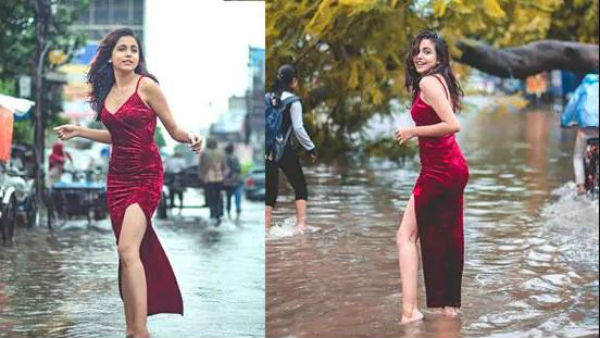 સોશિયલ મીડિયા પર મોડેલની આ તસવીરો વાયરલ થઈ રહી છે. તસવરોમાં મોડલે રેડ કલરની હાઈ થાઈ સ્લીટ ડ્રેસ પહેરી છે અને પૂરના પાણી વચ્ચે વિવિધ જગ્યાએ પોઝ આપી રહી છે.
