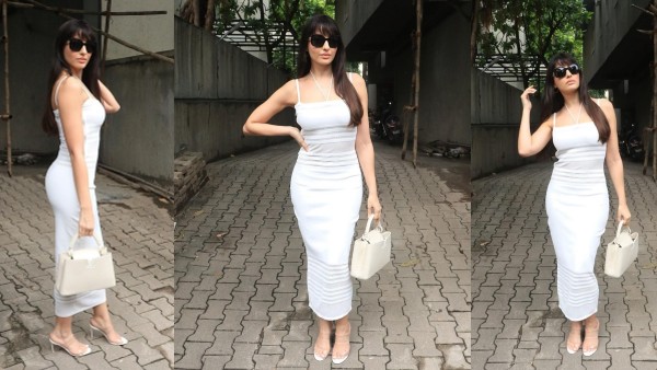 વ્હાઈટ મેક્સી ડ્રેસમાં નોરા