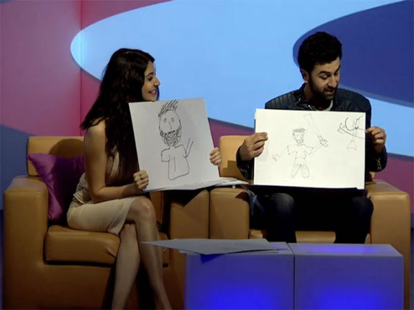 પછી રણબીર અને અનુષ્કાએ બનાવ્યું વિરાટનું ડ્રોંઇગ. જ્યાં એક બાજૂ અનુષ્કાએ વિરાટને કંઇક આ રીતે દોર્યો તો બીજી બાજુ રણબીરે વિરાટ સાથે અનુષ્કાને પણ સ્ટેડિયમમાં ઉભેલી દોરી.