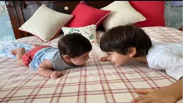 શેર કરવામાં આવેલો પહેલા ફોટામાં તૈમૂર અલી ખાન અને જેહ એક ગ્રે સોફા પર બેઠેલા દેખાય છે. બંને એકબીજા સાથે મસ્તી કરતા જોવા મળી રહ્યા છે. ફોટો ત્યારે ક્લિક કરવામાં આવ્યો જ્યારે બંનેની પીઠ કેમેરા તરફ છે.