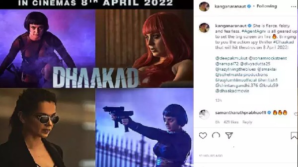 કંગના રનોતની ફિલ્મ ધાકડના લુકની સમંથાએ કરી પ્રશંસા, કહી આ વાત