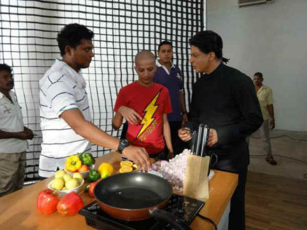 નોકિયા લૂમિયા એડની શૂટિંગ વેળા એક દાવત દરમિયાન ડુંગળી કાપી રહેલો બૉલીવુડ બાદશાહ.