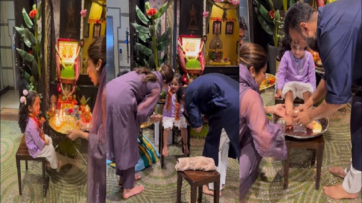શિલ્પા શેટ્ટીએ દીકરી સમિશાને દેવીની જેમ સજાવી, રાજ કુંદ્રાએ એના પગ ધોઈ કરી પૂજા, જુઓ Video