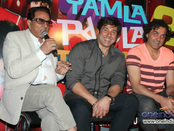 વાયપીડી 2ના ટ્રેલર લૉન્ચિંગ પ્રસંગે ધર્મેન્દ્ર, સન્ની દેઓલ તથા બૉબી દેઓલ.