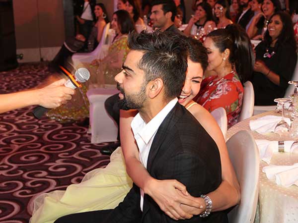 અનુષ્કાએ સમારંભમાં કંઇક આ રીતે વિરાટને આપ્યું ટાઇટ હગ.