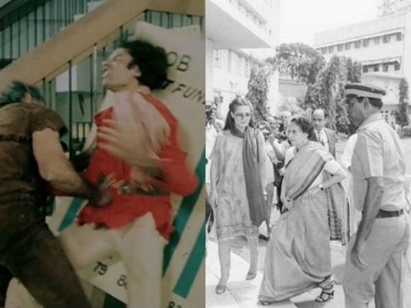 કુલી ફિલ્મ દરમિયાન ગંભીર રીતે ઈજાગ્રસ્ત થયેલા અમિતાભ બચ્ચનને હૉસ્પિટલમાં જોવા જતાં તે વખતના વડાપ્રધાન ઇંદિરા ગાંધી.