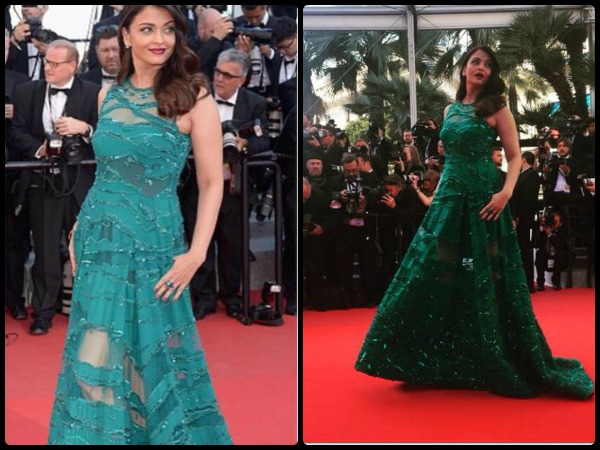 કેન્સના જ્યારે ગ્રીન ગ્લિટ્રરી ગાઉનમાં ઐશ્વર્યાએ એન્ટ્રી મારી ત્યારે બધાની નજરો એશ પર રોકાઇ ગઇ.