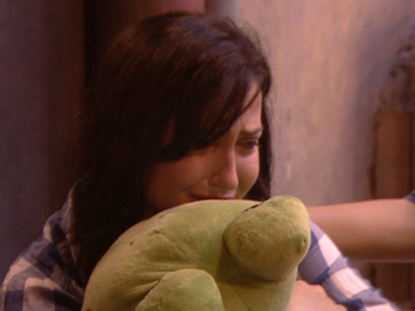 બિગ બૉસ 7ના પાંચમા દિવસની આ તસવીરમાં એલી અવરમને સમજાવતા પ્રત્યુષા બૅનર્જી.