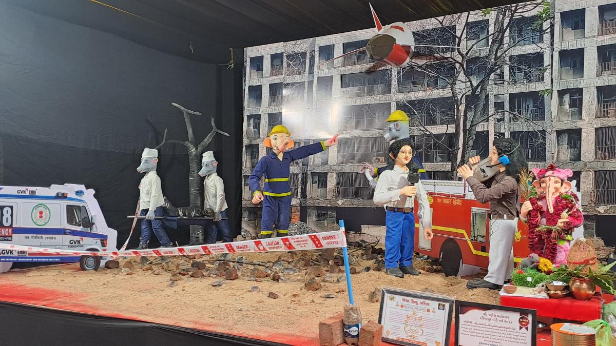 ગણેશ પંડાલમાં આરોગ્ય વિભાગ, મીડિયા, ફાયર, પોલીસ અને વહીવટી તંત્રની કામગીરીને દર્શાવવામાં આવી છે. અહીં દર્શનાર્થે આવતા ભક્તો મૃતકોને શ્રદ્ધાંજલિ અર્પે છે અને ભવિષ્યમાં આવી કોઈ દુર્ઘટના ન બને તે માટે પ્રાર્થના કરે છે. આ એક અનોખો અને પ્રશંસનીય પ્રયાસ છે.