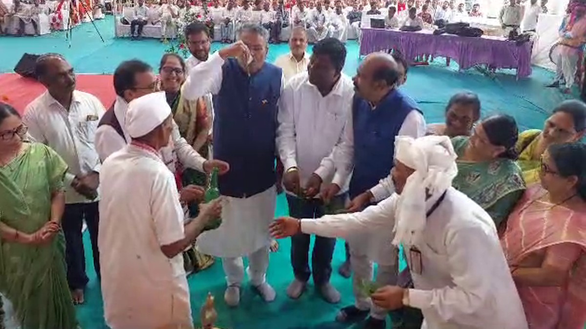 આદિવાસી પરંપરા અનુસાર દેશી દારૂથી ધરતીનો અભિષેક કરાય છે. આ અભિષેક માટે ત્યાં હાજર તમામ લોકોને પડીયામાં દેશી દારૂ આપવામાં આવ્યો હતો. જો કે રાઘવજી પટેલને આ પંરપરાની જાણ નહોતી.