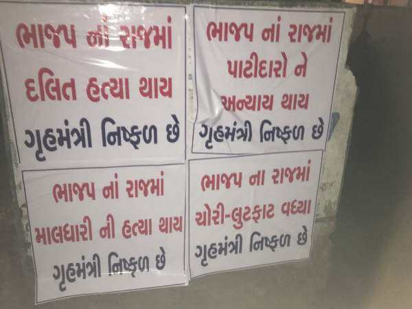 રોષે ભરાયેલા લોકોએ બુધવારે રાતના સમયે પ્રદીપસિંહ જાડેજાના મતવિસ્તારમાં કેટલાક પોસ્ટર લગાવવામાં આવ્યા હતા. આ પોસ્ટરમાં ગૃહ મંત્રી કાયદો અને વ્યવસ્થા જાળવવામાં નિષ્ફળ ગયા હોવાનો આક્ષેપ કરવામાં આવ્યા છે. જો કે, વહેલી સવારે ભાજપના કાર્યકર્તાઓ દ્વારા આ પોસ્ટર્સ ઉતારી લેવામાં આવ્યા હતા. ઉલ્લેખનીય છે કે, બે દિવસ પહેલા લોકોએ વિવિધ વિસ્તારમાં ચક્કાજામ કરી પોલીસ સામે પણ વિરોધ વ્યક્ત કર્યો હતો.
