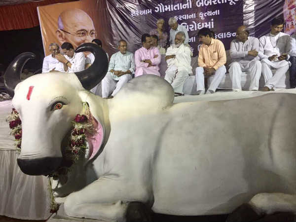 કેરળમાં ગૌહત્યા મુદ્દે ધરણા પર બેઠેલા ચૈતન્ય શંભુમહારાજે ગુરૂવારે ભારતી બાપુના હસ્તે ગાયનું દૂધ પીને પારણાં કર્યા હતા.