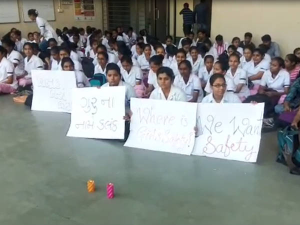 અમદાવાદમાં નર્સિંગ કોલેજની વિદ્યાથીનીઓ દ્વારા ધરણા કરી લંપટ પ્રોફેશનને સસ્પેન્ડ કરવાની માંગણી કરાઇ.
