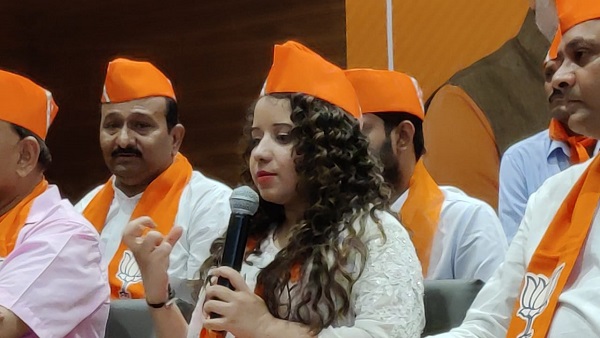 કોંગ્રેસની મણીનગર બેઠકની કોંગ્રેસ ઉમેદવાર શ્વેતા બ્રહ્મભટ્ટે કેસરીય ખેસ ધારણ કર્યો
