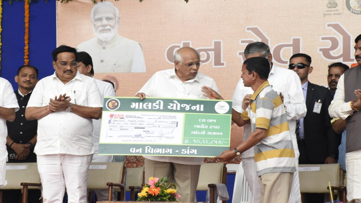 મુખ્યમંત્રી ભૂપેન્દ્ર પટેલના હસ્તે માલકી યોજના હેઠળ દક્ષિણ ડાંગ વિભાગના વઘઈ રેન્જમાં લાભાર્થી લક્ષ્મણભાઈ મલુગામ ગાવિત-જામલાપાડાને રૂપિયા 1022857, ચીખલી રેન્જમાંથી અર્જુનભાઈ ચીમનભાઈ પાલવા- ગુંદવહળ જેમને રૂપિયા 836869 તથા વઘઈ શરૂબેન બનસ્યાભાઈ પવાર-ઉગાચિચપાડા જેમને રૂપિયા 456956 ના ચેક અર્પણ કરવામાં આવ્યો હતો.