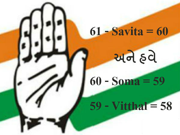 પરંતુ... પરંતુ... નથી લાગતું કે આવું થઈ શકશે, કારણ કે કોંગ્રેસના હયાત 60 ધારાસભ્યોમાં 2 સાંસદો છે. એ કેમ ભુલાય? તેમાં વિટ્ઠલ રાદડિયા ધોરાજી અને સોમાભાઈ પટેલ લીમ્બડી વિધાનસભા બેઠકો ઉપરથી વિજેતા થયાં છે. આ બંને કોણ છે. યાદ છે ને? નથી યાદ. આ બંને સાંસદો છે. વિટ્ઠલ રાદડિયા પોરબંદર લોકસભા બેઠક ઉપરથી સાંસદ છે, તો સોમાભાઈ પટેલ સુરેન્દ્રનગર લોકસભા બેઠક ઉપરથી સાંસદ છે.