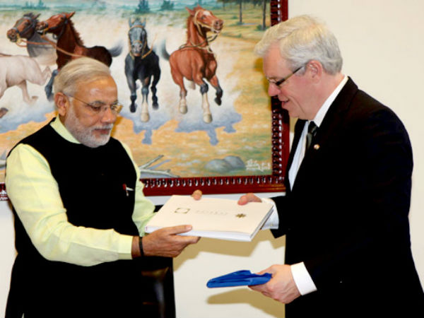 મુખ્યમંત્રી નરેન્દ્ર મોદીની સૌજ્ન્ય મુલાકાત આજે કેનેડાના મેનીટોબા પ્રોવિન્સના પ્રિમીયર ગ્રેગ સેલીંગ્નર (Mr. Greg Salinger)ના નેતૃત્વમાં ગુજરાત આવેલા બિઝનેસટ્રેડ મિશને લીધી હતી અને ગુજરાત સાથે વિવિધ ક્ષેત્રોમાં સહયોગ અને સહભાગીતાની વ્યાપક સંભાવના અંગે ફળદાયી પરામર્શ કર્યો હતો.