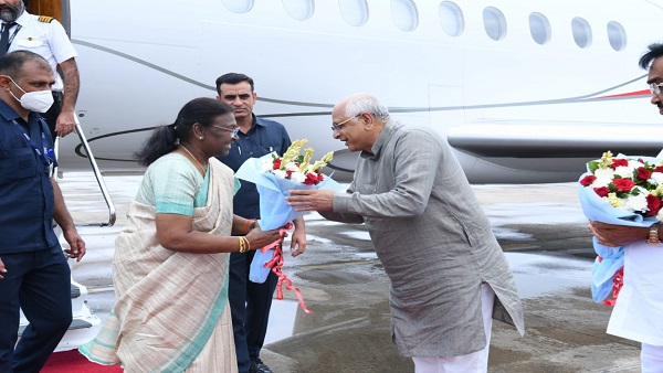મુખ્યમંત્રી ભૂપેન્દ્ર પટેલે દ્રોપદી મુ્ર્મુનુ કર્યું સ્વાગાત, મંત્રીમંડળના સભ્યો પણ હાજર