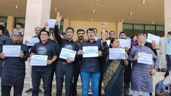 ગુજરાત વિધાનસભાના મુખ્ય દ્વાર પાસે કોગ્રેસનું વિરોધ પ્રદર્શન