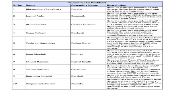 ગુજરાત AAP દ્વારા ઉમેદવારોની પ્રથમ યાદી જાહેર કરાઇ