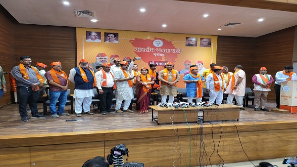 આજરોજ માન.પ્રદેશ અધ્યક્ષ સી.આર.પાટીલ નેતૃત્વમાં પૂર્વ લોકસભાના ઉમેદવાર તેમજ કોંગ્રેસના આગેવાન એ.જે.પટેલ, નટુભાઇ ઠાકોર, કાનજીભાઇ ચૌધરી સહિત મહેસાણાના આગેવાનો પ્રદેશ મહામંત્રી પ્રદિપસિંહ વાઘેલા અને રજનીભાઇ પટેલના વરદ હસ્તે ખેસ અનો ટોપી ધારણ કરી ભારતીય જનતા પાર્ટીમાં જોડાયા