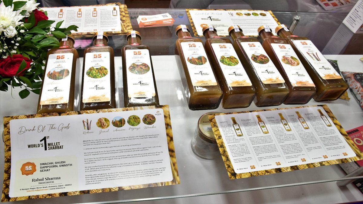 આ વર્ષે ભારત સહિત સંપૂર્ણ વિશ્વ આંતરરાષ્ટ્રીય મિલેટ્સ વર્ષ તરીકે ઉજવણી કરી રહ્યું છે. ત્યારે આ પ્રદર્શનીમાં એગ્રીકલ્ચર એન્ડ પ્રોસેસ્ડ ફૂડ પ્રોડક્ટ્સ એક્સપોર્ટ ડેવલપમેન્ટ ઓથોરિટી (APEDA) દ્વારા ભારતીય પરંપરાગત આહાર 'શ્રી અન્ન' નો સ્ટોલ ઉભો કરાયો હતો. અહીં બાજરી, જુવાર, રાગી સહિતના ધાન્યમાંથી તૈયાર કરાયેલુ વિશ્વનું પ્રથમ શરબત વિદેશી મહેમાનો માટે આકર્ષણનું કેન્દ્ર બન્યું છે.