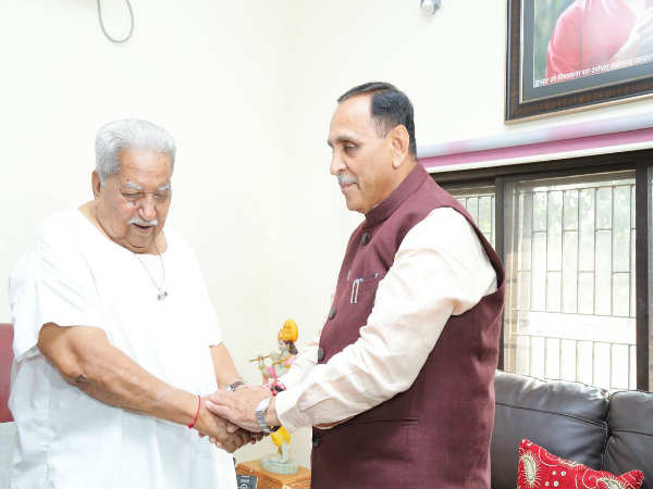 સોમવારે ઉમેદવારી ફોર્મ ભરતા પહેલા કેશુભાઇને મળ્યા રૂપાણી
